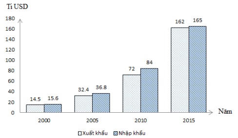D. Quy mô và cơ cấu xuất, nhập khẩu hàng hóa của nước ta giai đoạn 2000 - 2015.