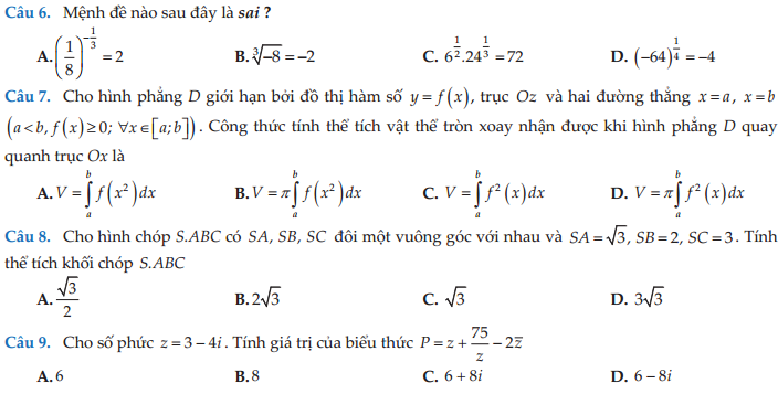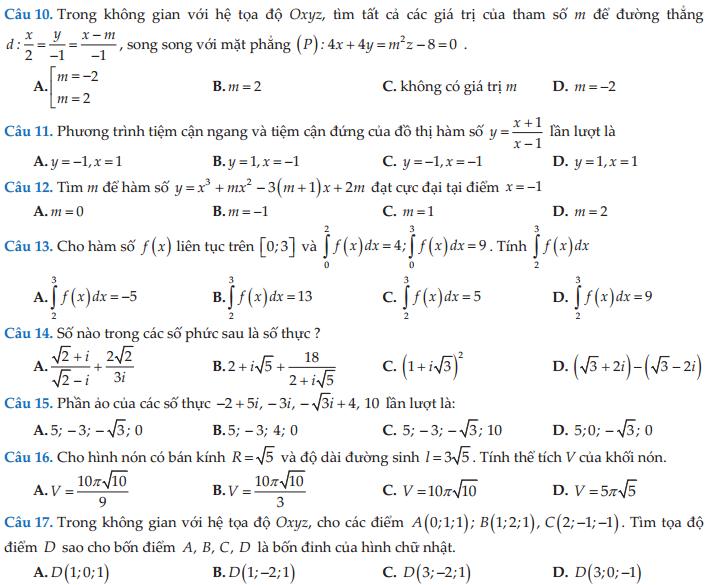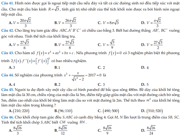 - Thi THPTQG 2020: Đề thi và đáp án môn Toán mã đề 110