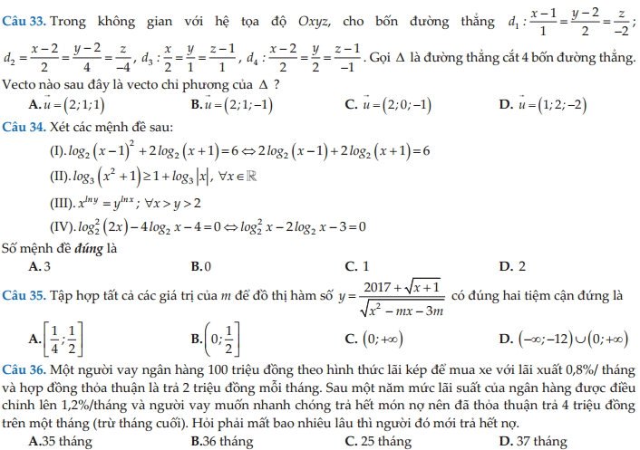 - Đề và đáp án môn Toán mã đề 121 thi THPT quốc gia năm 2017 đáp án của bộ GD-ĐT