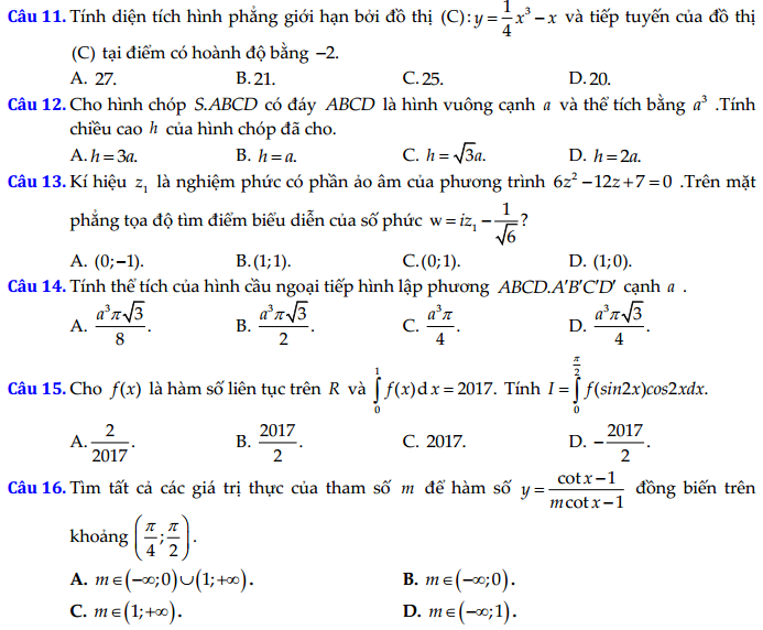 - Đề và đáp án môn Toán mã đề 121 thi THPT quốc gia năm 2017 đáp án của bộ GD-ĐT