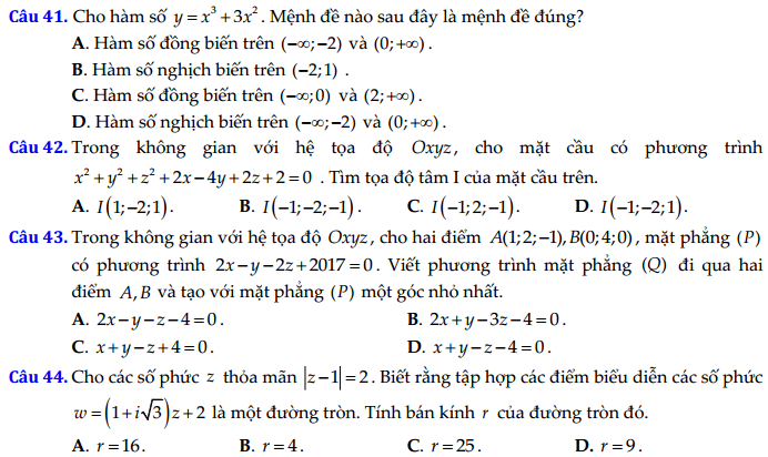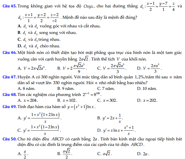 - Thi THPTQG 2020: Đề thi và đáp án môn Toán mã đề 110