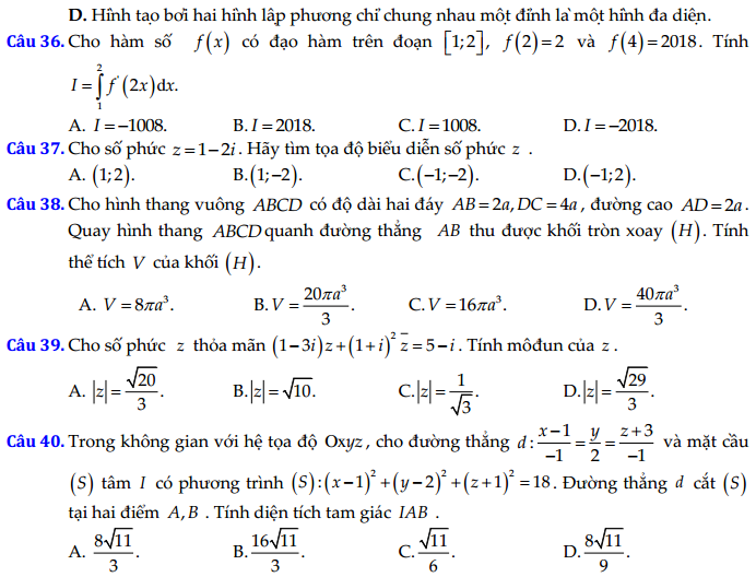- Thi THPTQG 2020: Đề thi và đáp án môn Toán mã đề 118