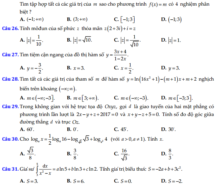 - Đề thi thử THPT quốc gia môn toán năm 2017- Đề tham khảo số 6