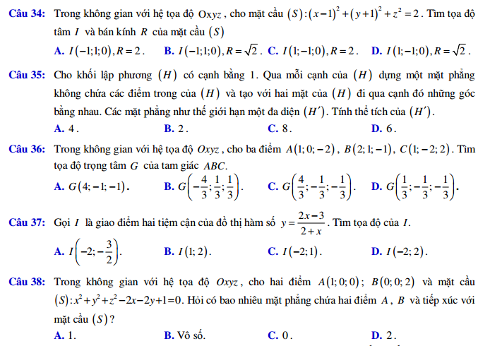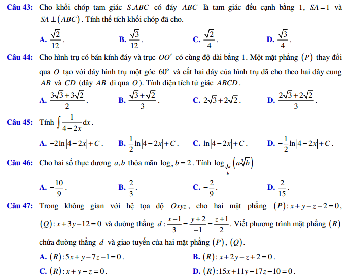 - Thi THPTQG 2020: Đề thi và đáp án môn Toán mã đề 102