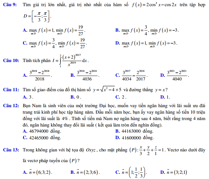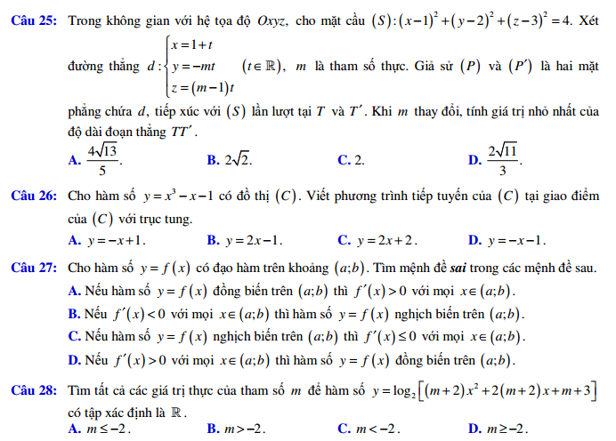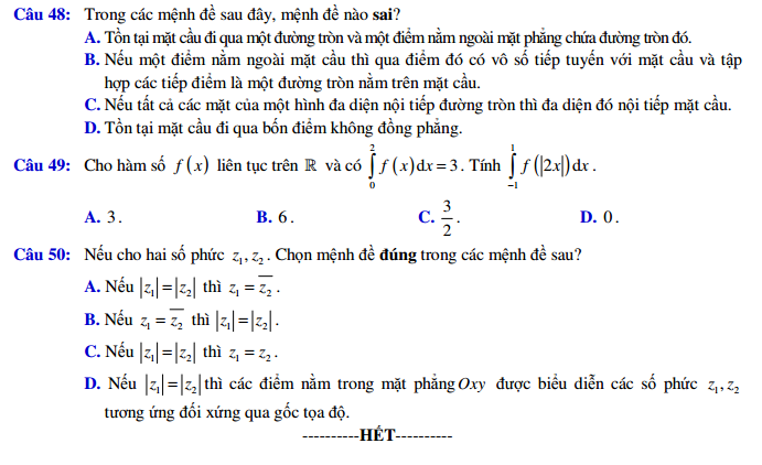 - Thi THPTQG 2020: Đề thi và đáp án môn Toán mã đề 121