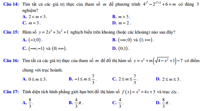 - Đề và đáp án môn Toán mã đề 120 thi THPT quốc gia năm 2017 đáp án của bộ GD-ĐT