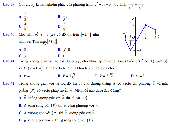 - Thi THPTQG 2020: Đề thi và đáp án môn Toán mã đề 118