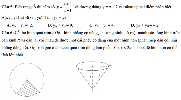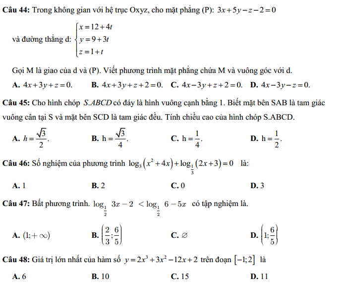 - Đề thi và đáp án môn Toán: Mã đề 105
