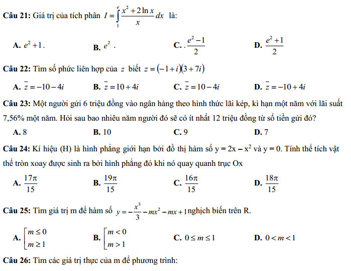 - Đề thi và đáp án môn Toán: Mã đề 121
