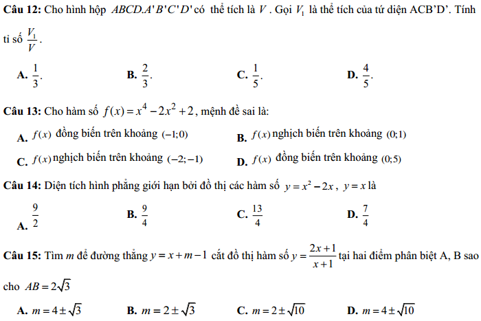 - Đề thi và đáp án môn Toán: Mã đề 115