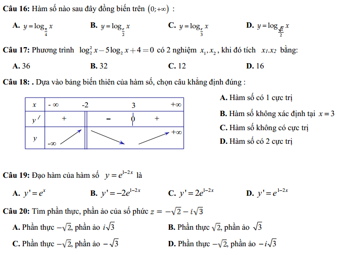 - Đề thi và đáp án môn Toán: Mã đề 123