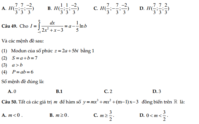 - Đề thi và đáp án môn Toán: Mã đề 123