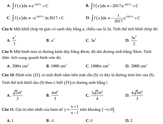 - Đề thi và đáp án môn Toán: Mã đề 117