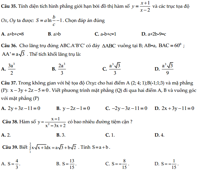 - Đề thi và đáp án môn Toán: Mã đề 109