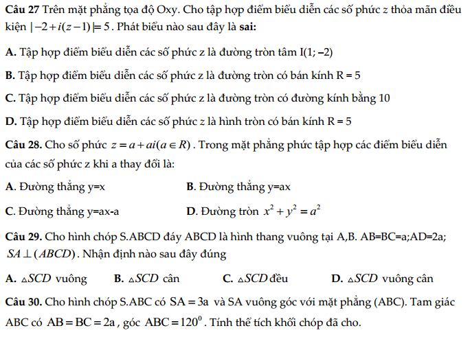 - Đề thi và đáp án môn Toán: Mã đề 121