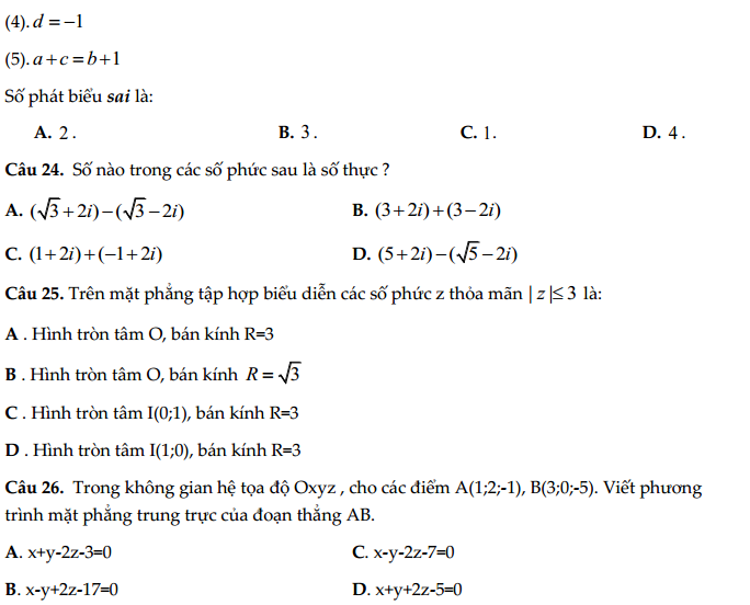 - Đề và đáp án môn Toán mã đề 104 thi THPT quốc gia năm 2017 đáp án của bộ GD-ĐT