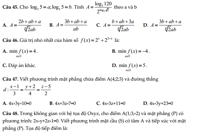 - Đề thi và đáp án môn Toán: Mã đề 101