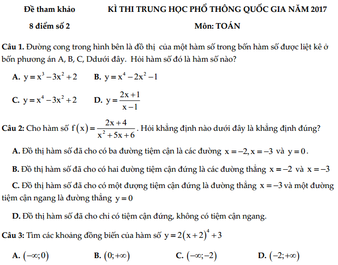 - Đề thi thử THPT quốc gia môn toán năm 2017- Đề tham khảo số 2