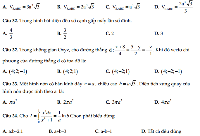 - Đề và đáp án môn Toán mã đề 124 thi THPT quốc gia năm 2017 đáp án của bộ GD-ĐT