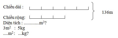Bài 12. Một thửa ruộng hình chữ nhật có nửa chu vi là 136m; biết chiều dài bằng 5/3 chiều rộng.(3đ)