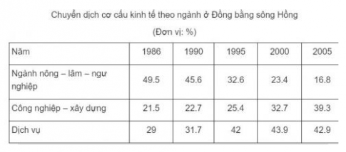 Câu 40: Năm 2005, ngành kinh tế nào chiếm tỉ trọng lớn nhất trong cơ cấu GDP của vùng