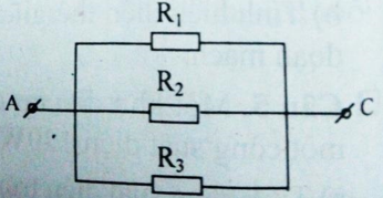 = 30Ω; $R_{2}$ = 20Ω; $R_{3}$= 12Ω được mắc song song với nhau như sơ đồ hình bên thì điện trở tương đương RAC của đoạn mạch là:
