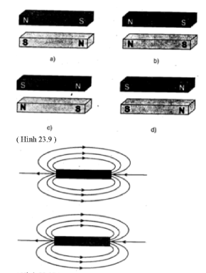Câu 38: Hai thanh nam châm đặt gần nhau tại các vị trí như hình vẽ đường sức từ được vẽ theo hình ứng với vị trí nào của hai thanh nam châm?
