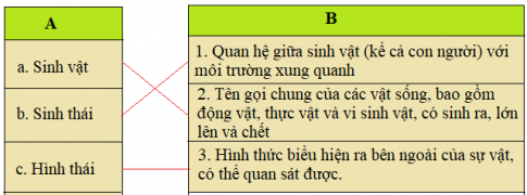 b. Mỗi từ ở cột A ứng với nghĩa nào ở cột B?