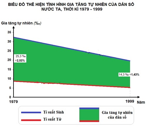 - Vẽ biểu đồ thể hiện tình hình gia tăng tự nhiên của dân số ỏ nước ta thời kì 1979 – 1999?
