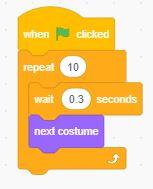 Bắt đầu Lặp hai hoạt động sau đây 10 lần: 1) Chờ 0.3 giây; 2) Xuất hiện hình tiếp theo | ![]() |