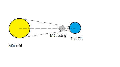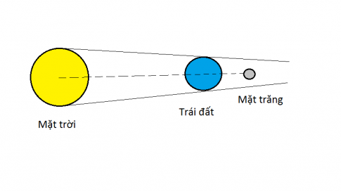 Em hãy vẽ hình mô tả vị trí của Mặt trời, Mặt trăng, Trái đất khi xảy ra hiện tượng nhật thực và hiện tượng nguyệt thực.