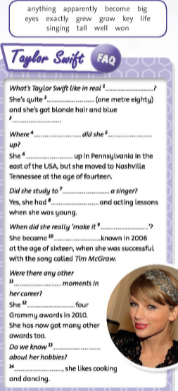 1. life 2. tall 3. eyes 4. exactly 5. grow