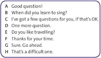 6. Read the dialogue and choose the best answer. Write a letter (A-H) for each answer. There are two extra answers.