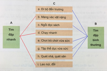 b. Ghép chữ cái (a, b, ........i) trong ô chữ ở cột C phù hợp với trạng thái của tim ở cột A hoặc cột B?