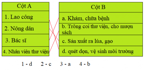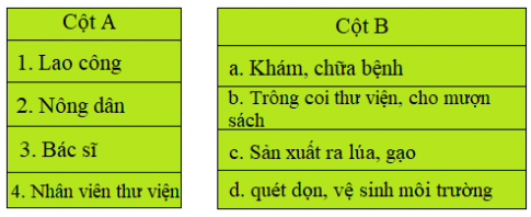 Ghép mỗi sô (1, 2, 3, 4) ở cột A với một chữ cái (a, b, c, d) ở cột B cho phù hợp