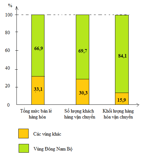 Tổng mức bán lẻ hàng hóa và số lượng hành khách vận chuyển ở vùng Đông Nam Bộ lại chiếm tỉ trọng cao so với cả nước vì: