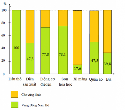 Dựa vào bảng số liệu 34.1 trong SGK, em hãy: Vẽ biểu đồ cột chồng thể hiện tỉ trọng một số sản phẩm tiêu biểu của ngành công nghiệp Đông Nam Bộ so với cả nước năm 2001.