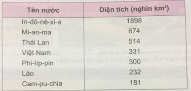 b. Đọc tên những nước có diện tích lớn hơn và nhỏ hơn diện tích nước ta