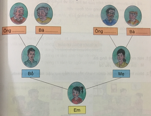 3. Tìm tiếng điền vào chỗ trống để hoàn thành từ chỉ người sinh ra bố, mẹ của em. Chép các từ đã điền đúng vào vở