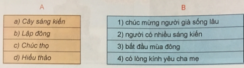 4. Chọn lời giải nghĩa ở cột B phù hợp với từ ngữ ở cột A