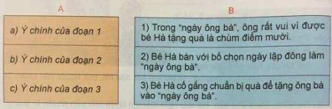 7. Nối cột A với cột B để xác định ý chính của mỗi đoạn:
