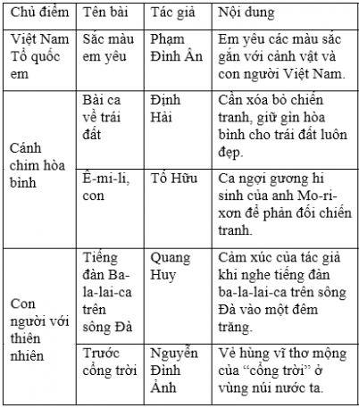 2. Lập bảng thống kê các bài thơ đã học trong các giờ tập đọc từ bài 1A đến bài 9C theo mẫu sau: