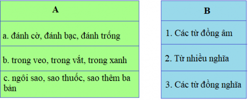 6. Nối nhóm từ (in đậm) ở cột A với tên gọi thích hợp ở cột B.