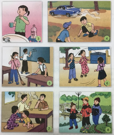 - Các bạn trong từng hình đang làm gì?