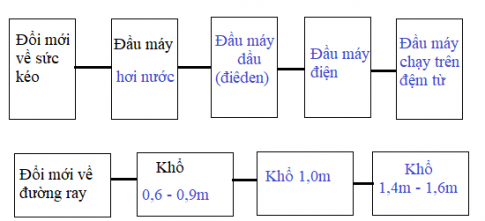 Điền vào ô trống những nội dung phù hợp thể hiện ró xu hướng đổi mới về sức kéo và đường ray trong giao thông vận tải đường sắt thế giới, sau khi đã nghiên cứu kĩ nội dung bài học trong SGK