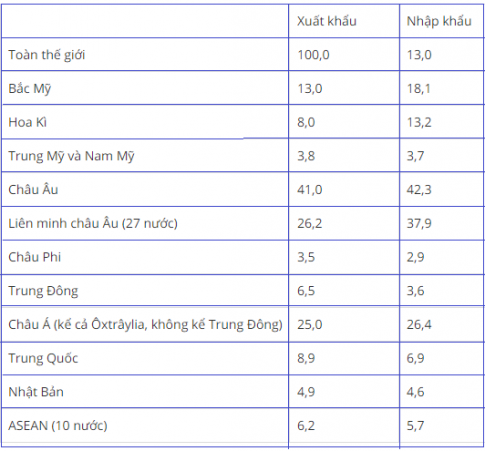 =>Trung Quốc và các nước ASEAN có đóng góp tương đối lớn trong thị trường xuất nhập khẩu thế giới.