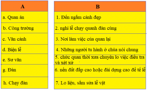 3. Chọn lời giải nghĩa ở cột B cho phù hợp với mỗi từ ngữ ở cột A