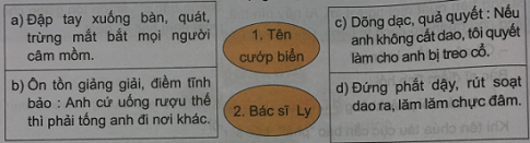 1. Quan sát hình ảnh bác sĩ và tên cướp trong bức tranh dưới đây và nhận xét về vẻ mặt, hình dáng của các nhân vật