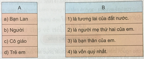 2. Chọn từ ngữ thích hợp ở cột A ghép với từ ngữ ở cột B để tạo thành câu kể Ai là gì?