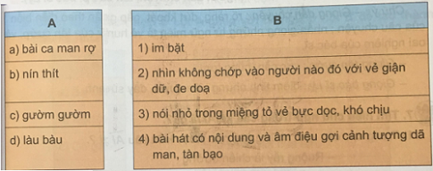 3. Chọn lời giải nghĩa ở cột B cho phù hợp với mỗi từ ngữ ở cột A